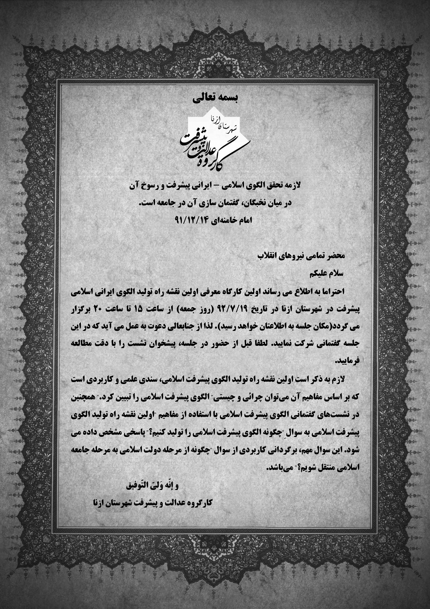 دومین نشست هم اندیشی کارگروه های الگوی پیشرفت اسلامی-قم 25 و 26 مهرماه 1392